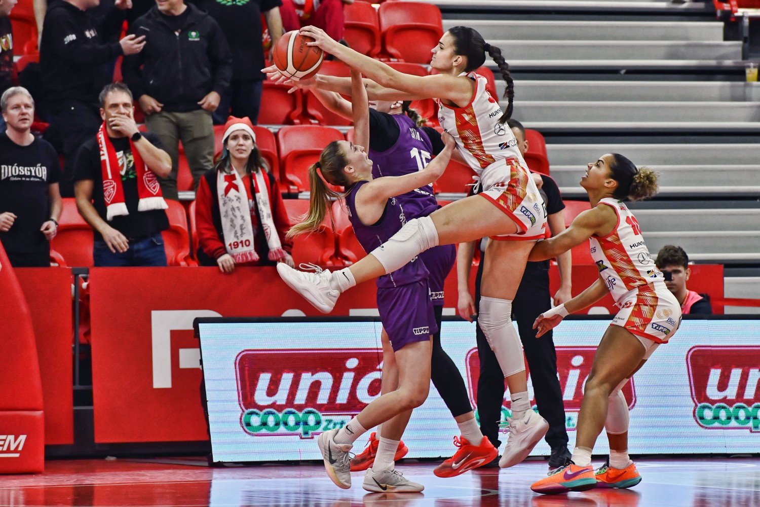 A fordulás után sem lassítottak a hazaiak, akik az első hat percben egy 14-3-as rohanással megduplázták az előnyüket (53-32), az itt kialakított különbséget pedig meg tudták őrizni a játékrész végéig, amikor Boricic büntetőjére Sakeviciute felelt egy duplával, így húsz pont feletti vezetéssel várhatta az utolsó felvonást a Csata (62-41).