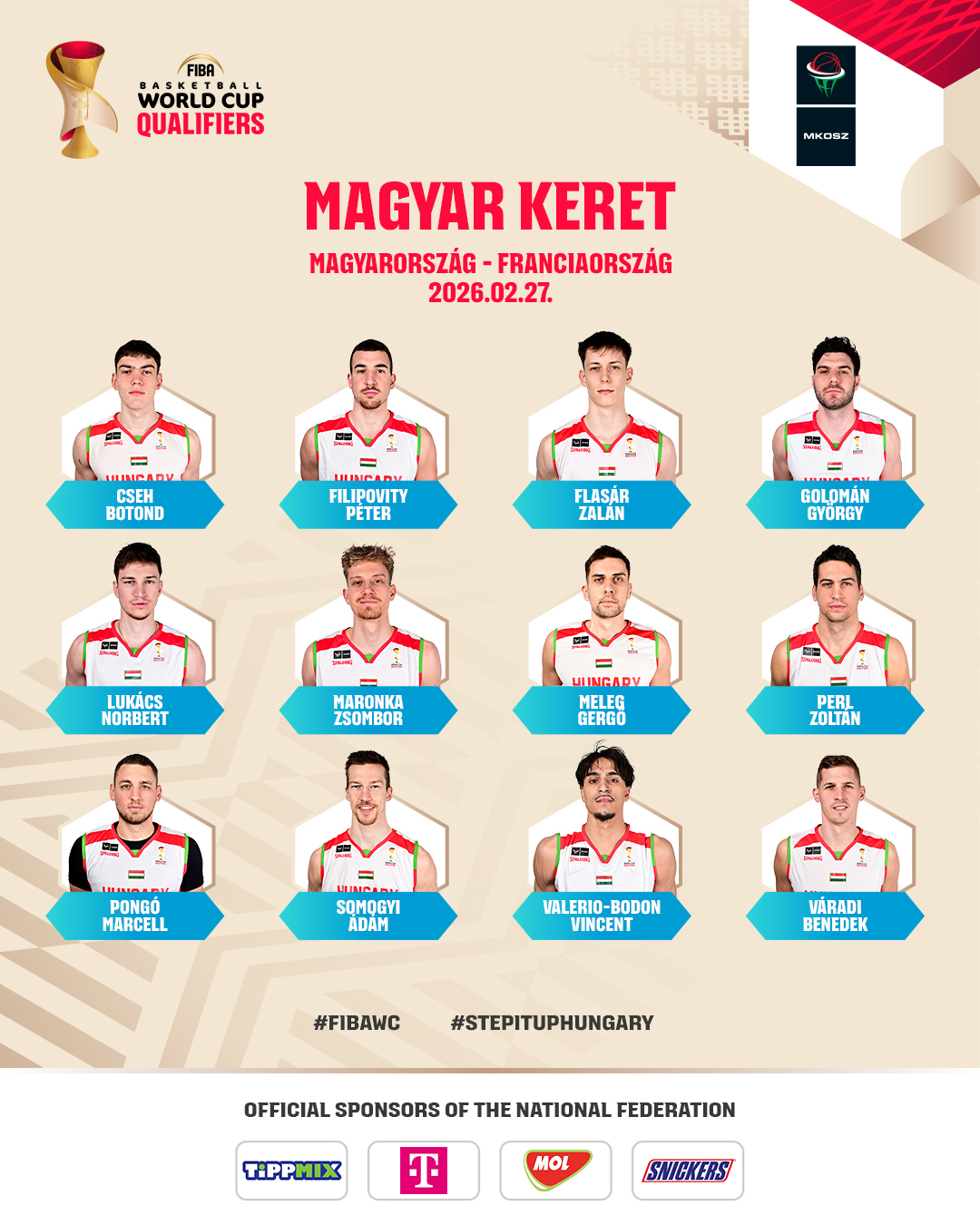 Gasper Okorn szövetségi kapitány kijelölte a magyar válogatott 12-es keretét a holnap esti, Franciaország elleni világbajnoki selejtezőre.