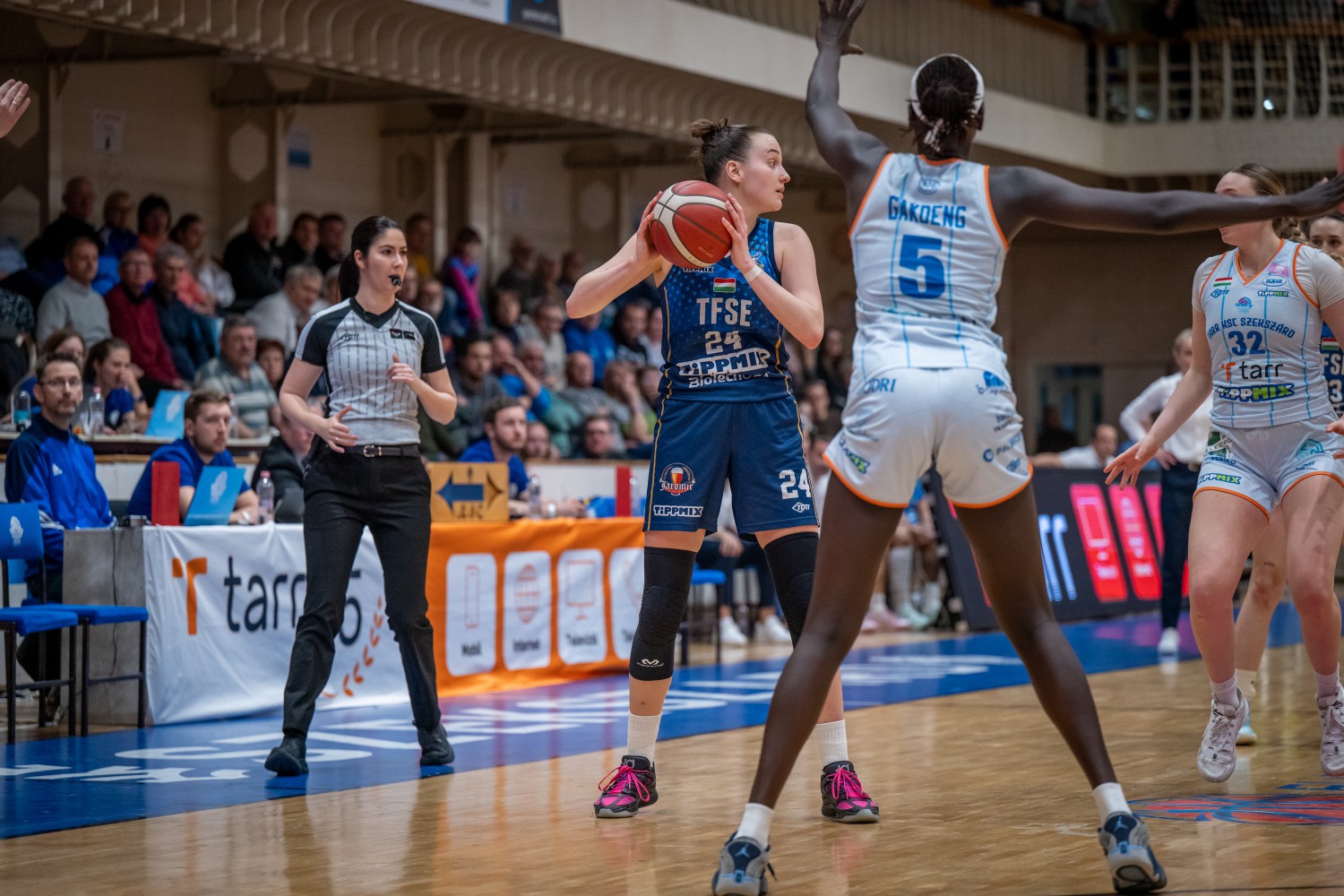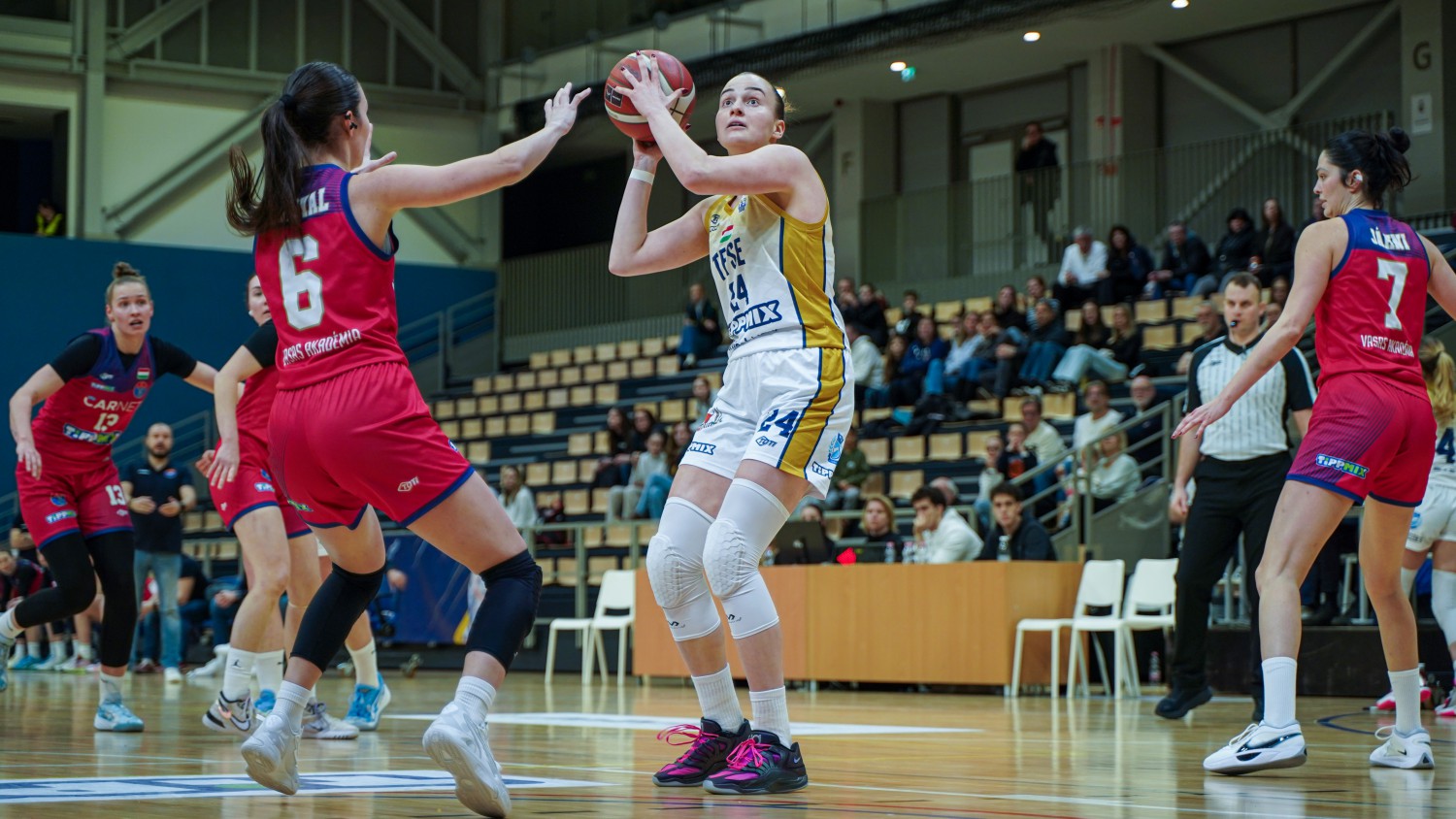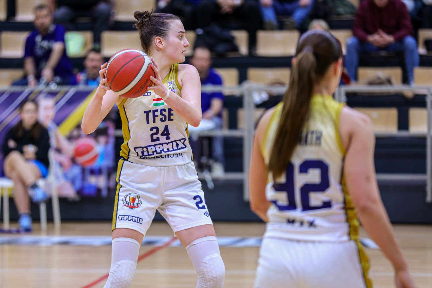 Már a BEAC-ben is vállalkoztam távolról, de itt még inkább próbálkozhatom triplákkal, hiszen a mi játékunk kifejezetten erre épül. Veszélyes tudok lenni kintről, és ha az ellenfél ötös poszton lévő játékosának utánam kell jönnie a periméterre, abból is előnyt kovácsolhat a csapat. A TFSE irányítója, Dúl Terka 33 percet átlagolt idén, és nála jobb játékszervezőt nem is kívánhat magának az ember, remek átadásokkal talál meg minket és engem.