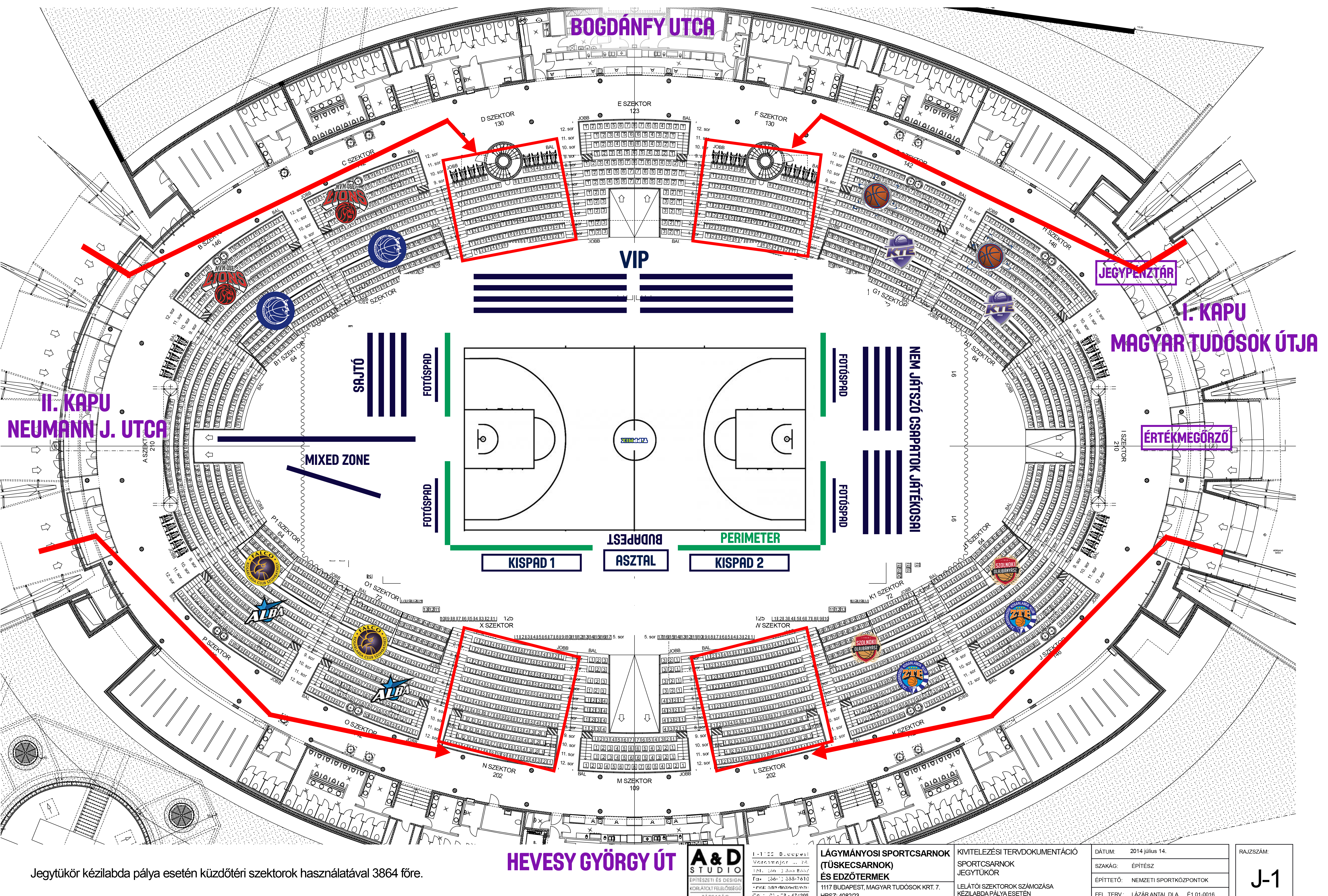 Az F és az L szektorok beléptetése az I-es kapun, a Magyar Tudósok Útja felől történik, míg azok, akik a D vagy az N szektorba vásárolnak jegyet, a II-es kapun, a Neumann János utca felől léphetnek a csarnokba az alábbi képen is jelölt oldalakon: