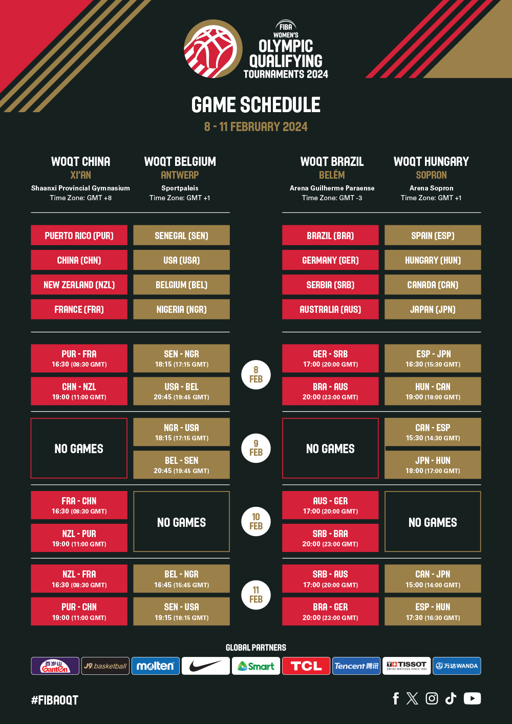 A Nemzetközi Kosárlabda Szövetség (FIBA) hivatalosan is kihirdette a női olimpiai selejtezőtornák mérkőzésidőpontjait.