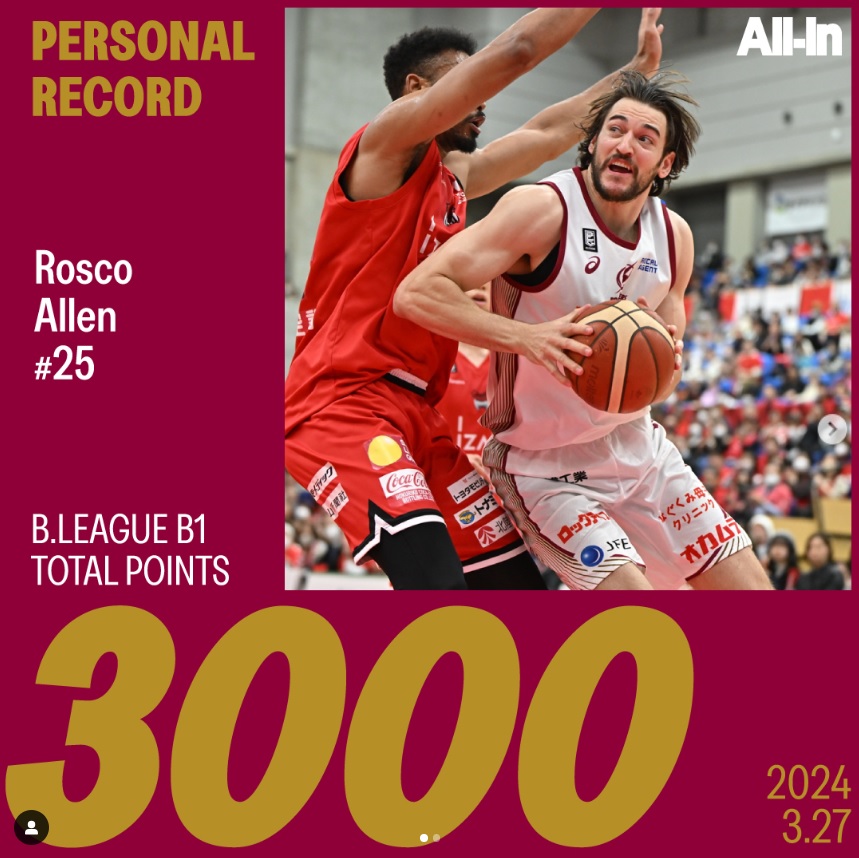 A Kawasaki Brave Thunders hét közben könnyedén verte a csontutolsó Toyama Grousest (63-75), aztán viszont kétszer is kikapott a Chiba Jets otthonában (91-77, 95-71), de így is maradt harmadik a Central csoportban (26-22). Rosco Allen elsőre 16 pontot, 4 lepattanót és 3 gólpasszt rakott össze (17 VAL), ráadásul ezen a találkozón elérte a 3000 pontos határt a japán ligában, ezúton is gratulálunk! A Jets ellen 20 pont, 8 lepattanó, illetve 2-2 gólpassz és szerzett labda (24 VAL), valamint 8 pont, 3 lepattanó és 2 gólpassz került a neve mellé.