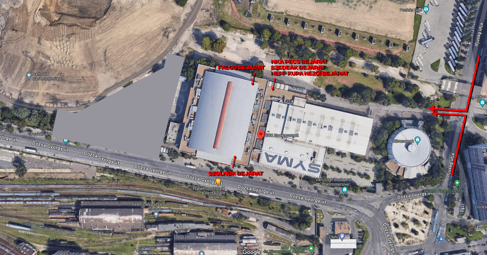 – A délelőtt és kora délután megrendezésre kerülő Férfi Dr. Hepp Ferenc Emlékkupára érkezők az Ifjúság útja felől tudják megközelíteni a csarnokot. A Zsíros Tibor Férfi Magyar Kupa esetében ugyanez érvényes a Falco-Vulcano Energia KC Szombathely, az NKA Universitas Pécs és az SZTE-Szedeák szurkolóira, míg az NHSZ-Szolnoki Olajbányász drukkerei a Dózsa György út felöl léphetnek majd be a csarnokba, ahogy az az alábbi térképen is látható.