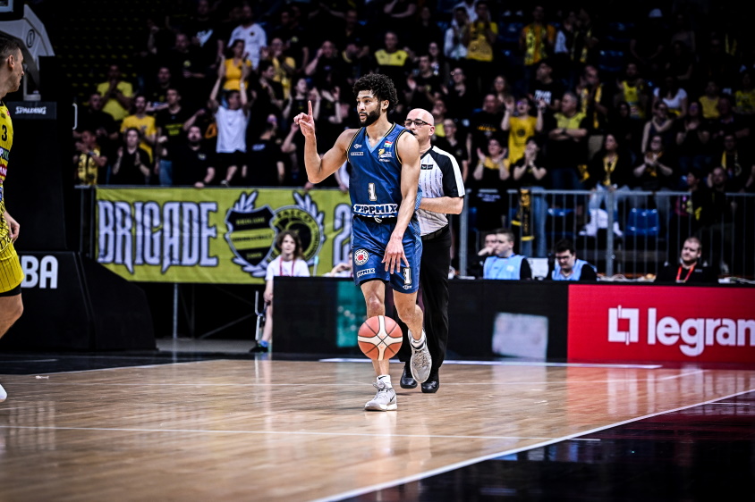 Perl, majd Pongó szórt hárompontost, de Woolridge és Mucza révén továbbra is a címvédő sarkában loholt a szegedi együttes, időt is kellett kérnie Milos Konakovnak (29-27). Mucza trojkájával fordítottak is a Tisza-partiak, de Benke gyors öt pontjával visszavette a vezetést a sárga-fekete alakulat. A félidő hátralévő részében fej fej mellett haladtak a csapatok, Woolridge mellé Locke is felzárkózott pontszerzésben a Szedeáknál, olyannyira, hogy a nagyszünet előtti utolsó másodpercekben hintett hármasával a kék-fehérek mehettek előnnyel az öltözőbe (42-45).
