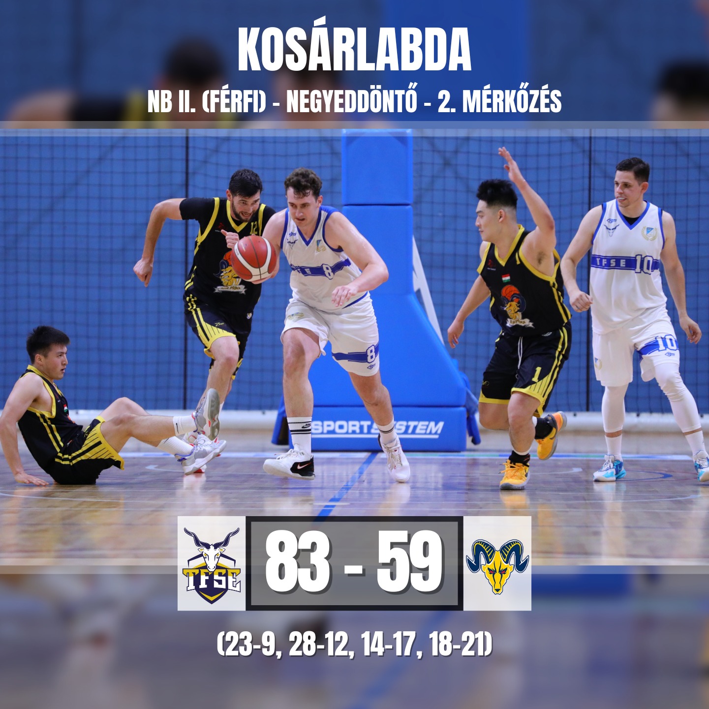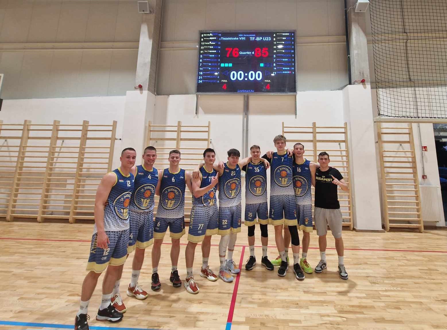 A fővárosban összeszedett 9 pontos hátrányából a második negyed derekára hatot ledolgozott a Gál M. (19/9)-Molnár M. (14/3)-Fehér Á. (11/9) trió vezette Tiszakécske, ám ettől kezdve már a TF-BP fiataljainak akarata érvényesült. Szünetig 2 pontra feljött, a második félidőben pedig már kézben tartva az irányítást végül a visszavágón is 9 ponttal nyert a nagyrészt az extra dobóformát kifogó Simon B. (36/33) és A. Habel (20) ponterősségében bízó TF-BP U23-as együttese.