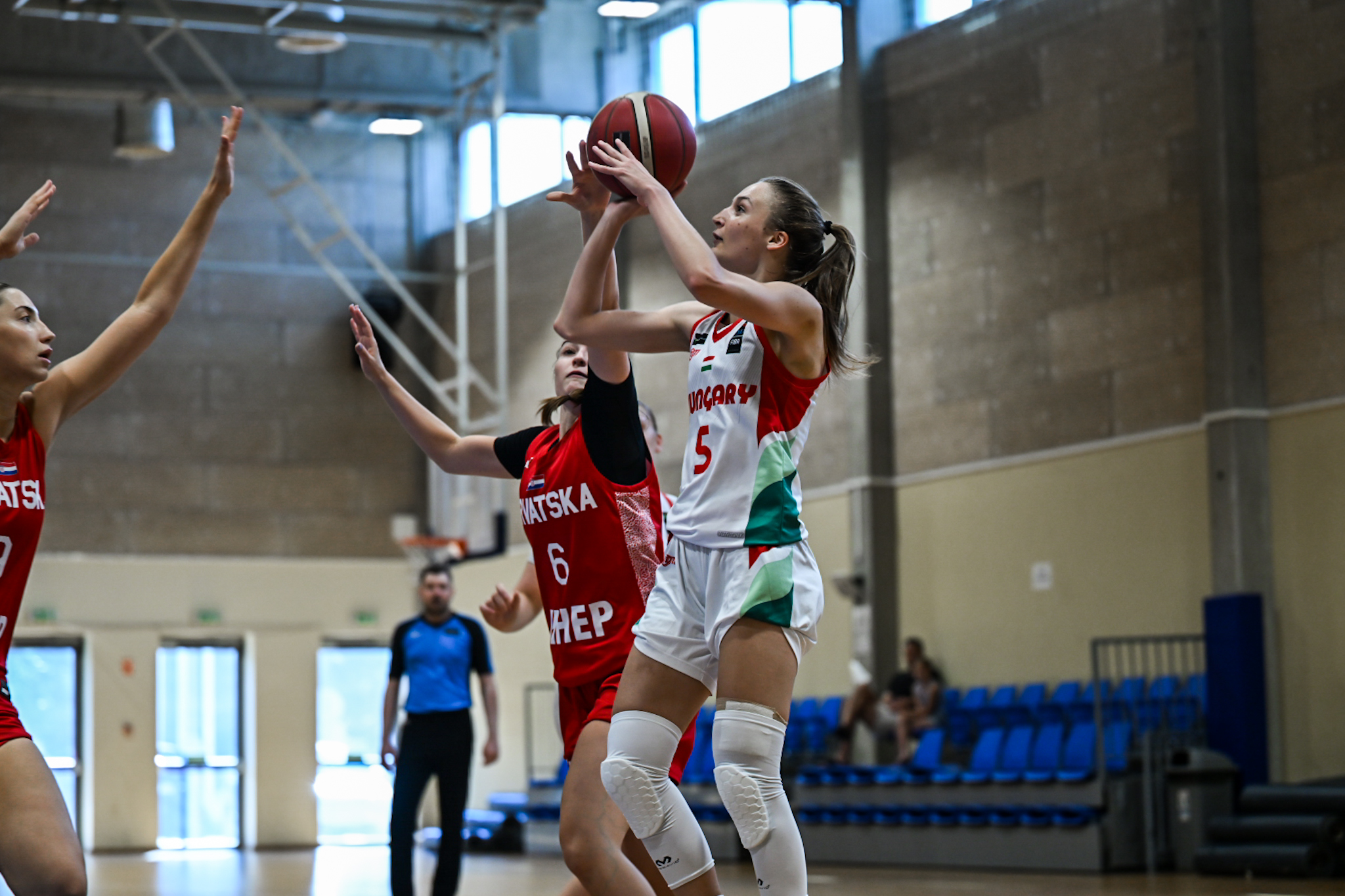 Bár a vendégek 19-14-re megnyerték a harmadik szakaszt, de a játékrész végére visszatornázta 20 pont környékére az előnyét csapatunk. Sőt, a záró szakasz elején ezt Bajzáth Lili duplájával át is léptük. A stáb bő rotációt alkalmazott és 23 percnél többet egyetlen játékos sem töltött a pályán. A hajrában Zsámár Panna is triplát értékesített, így minden nevezett játékosunk szerzett pontot ezen a délutánon. Az utolsó percekre a védekezés némileg fellazult. Amikor a hatodik horvát tripla is célt ért a sarokból, időkérése alkalmával erre Tursics Krisztián is felhívta a figyelmet. Ellenfelünket 14 pontnál közelebb nem engedtük és a magyar siker nem forgott veszélyben. Összességében egy héttel a kontinenstorna rajtja előtt egy hasznos mérkőzésen van túl csapatunk. Végül 79-63-as magyar siker született. Gyöngyösi Janka 16, Bajzáth Lili 10 ponttal zárt.