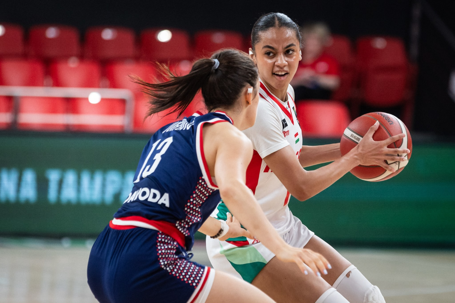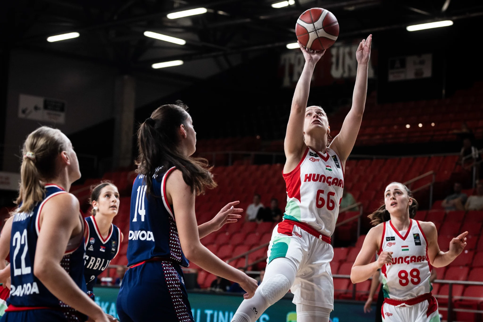 A különbség 20 egység környékén látszott állandósulni. A szerbeknek 37-20-nál akadt egy felzárkózásuk, de Holcz Rebeka, Gyöngyösi Janka és Baa Dominika pontjaival gyorsan visszaállítottuk a nagyobb különbséget. 44-22-nél már kétszer annyi pontunk volt, mint riválisunknak. A félidőig érdemben nem változott a játék képe. Az utolsó másodpercekben ugyan beesett egy szerb tripla, de a nagyszünetben így is 49-32-re mentünk. Továbbra is 60% felett járt a mieink mezőnymutatója, Baa Dominika 16, Holcz Rebeka 12, Gyöngyösi Janka 9 pontnál járt. Maradva a számoknál, 19-12-re vezettünk a lepattanókban. Jó védekezéssel a szerb csapatot 14 eladott labdába kényszerítettük bele. A harmadik negyed elején 52-38-nál ismét akadt egy szerb felzárkózás, de a legjobbkor jött Strausz Edina találata. Amikor pedig a Baa, Gyöngyösi, Holcz trió ismét megvillant, 60-39-nél újra 20 egység felett mentünk.