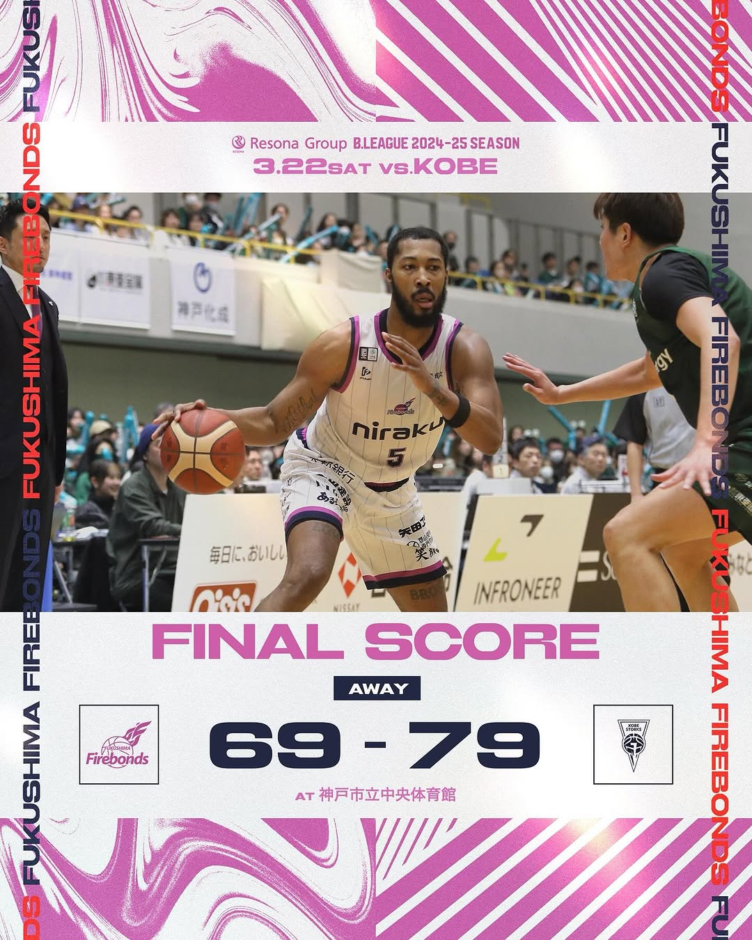 A japán másodosztályban a Kobe Storks vendége volt a Fukushima Firebonds, és mindkétszer kikapott (79-69, 95-78), így természetesen maradt utolsó, hetedik keleten (12-39). Mikael Hopkins elsőre nagyon hasznos volt a mezőnyben (7 pont, 15 pattanó, 3 gólpassz, 1-1 szerzett labda és blokk, 26 VAL), másodjára viszont egy fokkal csendesebb volt (8 pont, 7 pattanó, 3 gólpassz, 1 blokk, 20 VAL).