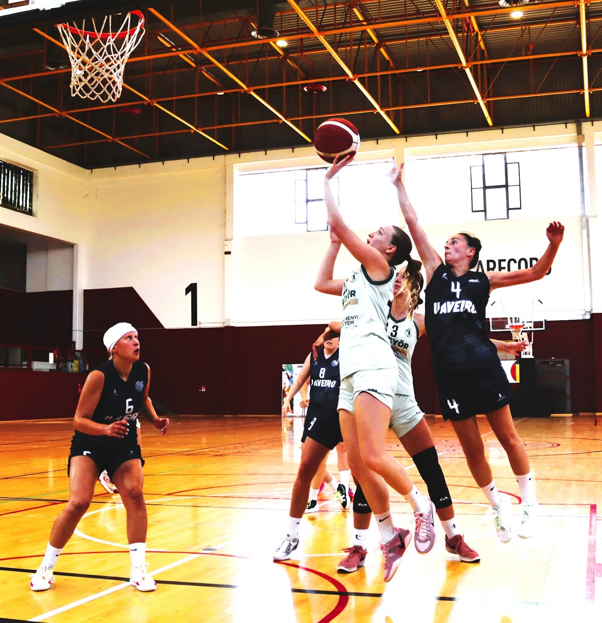 A második etap elején Bognár Kinga révén ugyan felzárkózott 5 pontra a magyar női egyetemi bajnok, egy duplával, majd egy triplával megduplázták előnyüket a luzitán lányok. Bánszegi Borbála villant, és több lehetőségük is volt szorossá tenni a találkozót a győrieknek, ám a befejezéseket rendre elkapkodták. Egy 2+1-es akcióval ismét 10 pont fölé nőtt a magyar hátrány, jól jött Bánszegi hármasa. A félidő hajrájában 4 büntetőt is elhibáztak a győriek, a túloldalon viszont jött egy újabb 2+1. A félidő végén Mihály P. büntetőivel és Bognár Kinga hármasával, egy 7-0-lal 6 pontra feljöttek a magyar lányok.