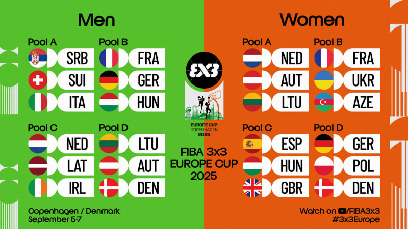 Elkészült a 3x3-as Európa-bajnokság csoportbeosztása - a szeptember 5-7. között rendezendő kontinensviadalnak Koppenhága ad otthont.