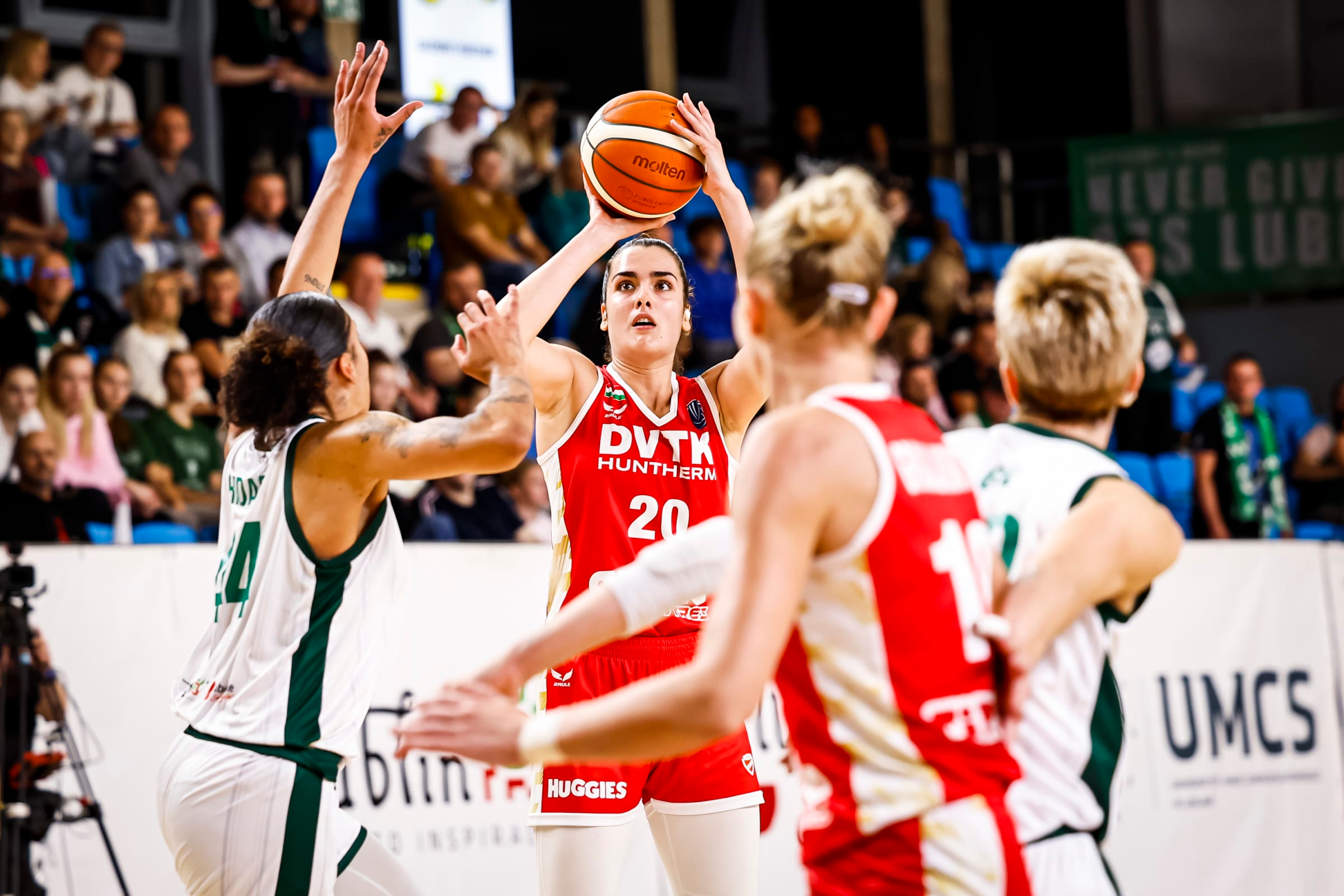 Monika Grigalauskyte tett három pontot a közösbe a negyedik negyed elején, amellyel hosszú idő után először két kosárral vezetett a Miskolc, majd nem sokkal később Kányási is faulttal együtt szerzett kosarat, jött is az újabb hazai időkérés (52-60). Már kilenc ponttal is vezetett a DVTK, ám ekkor megint elkezdtek beesni a hazai dobások, pillanatok alatt kettőre zárkózott a Lublin, így a záró etap felénél újfent Völgyi Péteren volt a sor, hogy időt kérjen (59-61). A pályára visszatérve betalált a DVTK, azonban ezután a játékvezetők sportszerűtlen hibát ítéltek Kányási Vera ellen, ezt három ponttal büntették a házigazdák, sőt két újabb szabaddobással a vezetést is visszavették (64-63). A rendes játékidő hátralévő részében igazi körömrágós végjátékot láthattunk, amelyből a Lublin került ki győztesen, így előnnyel utazhat a miskolci visszavágóra, amelyre jövő héten szerdán 18 órától kerül sor a DVTK Arénában.