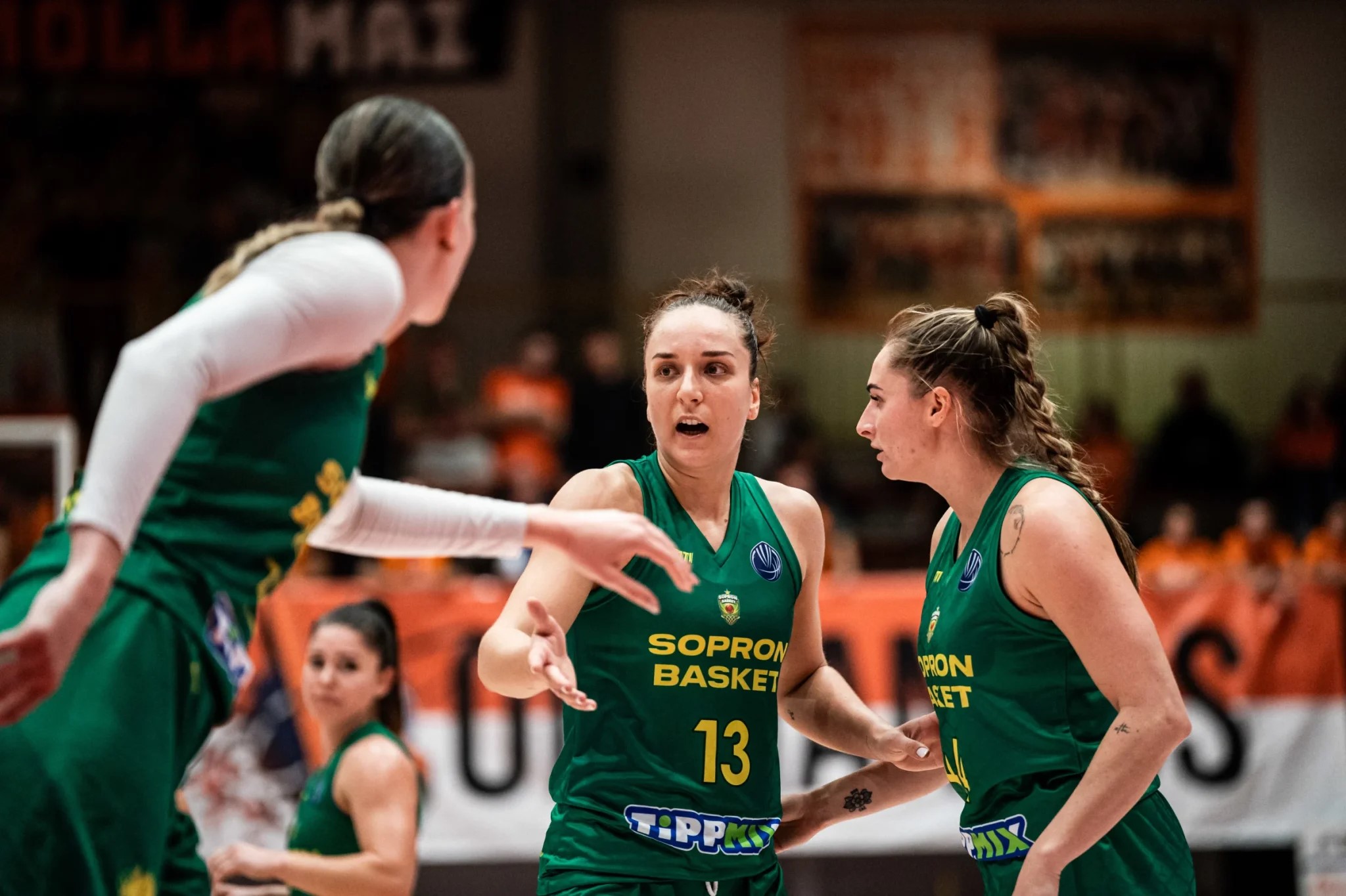 Sopron Basket: Mühl 9/3, Friskovec 23/12, Wallack 6/3, Brooks 14/3, Böröndy 6. Csere: Laczkó 2, Papp 5, Sitku -.