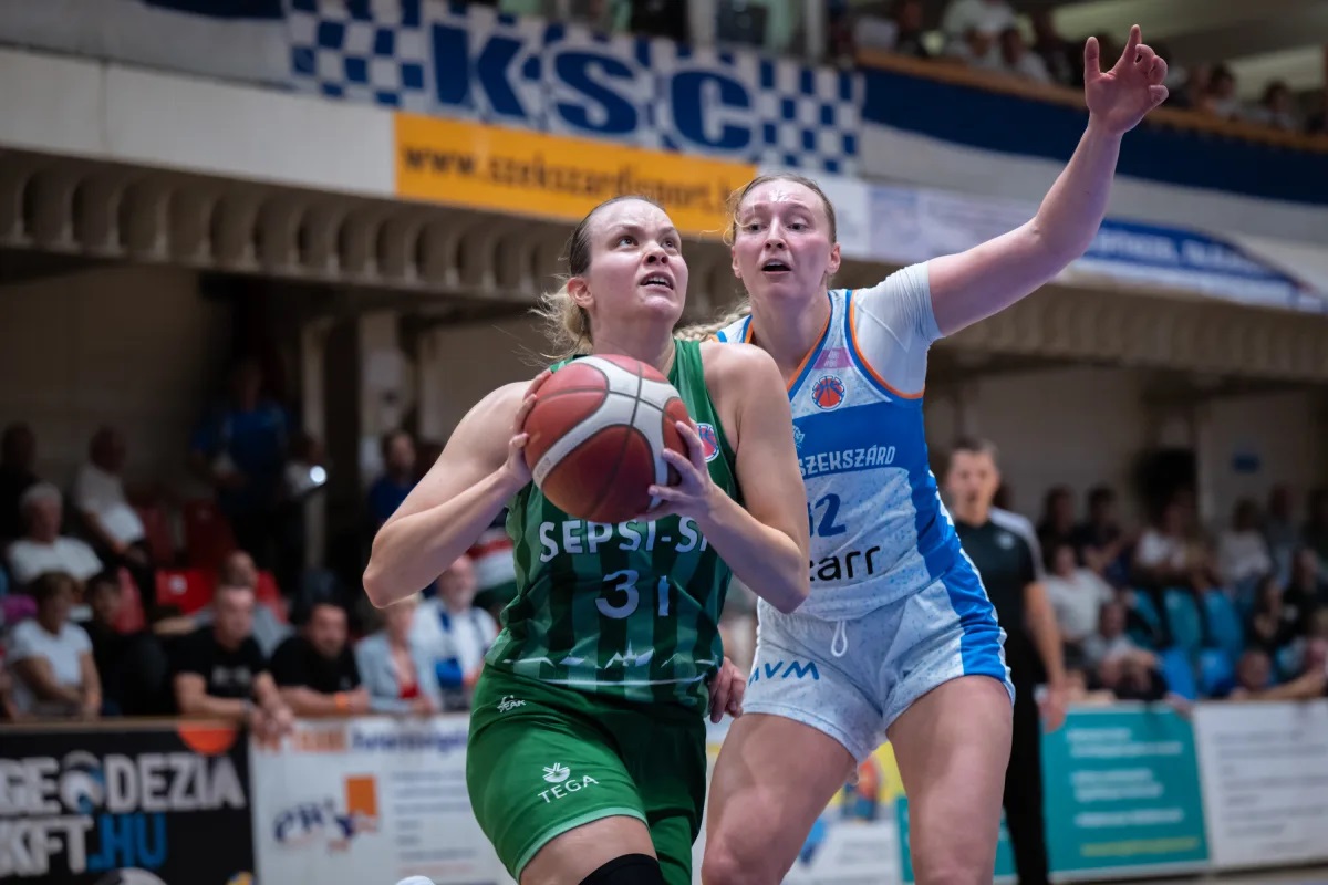 Megteltek a szekszárdi csarnok lelátói, hiszen kulcsmérkőzés várt a KSC-re. A reális továbbjutási esélyek megteremtése érdekében nyerniük kellett a hazaiaknak. A Sepsi a szép búcsúért küzdve, de immár veszíteni való nélkül, felszabadultan léphetett pályára. Az összecsapás előtt a szülinapos Gereben Livit is köszöntették. A vendégek kezdtek jobban, az első percben 5-0-ra léptek el. Dombai Réka és Carolina Rodrigues révén gyorsan szépített a KSC. Sőt, 9-9-nél egyenlített az első szakasz felénél. Innen azonban 10-2-vel újra a Sepsi került lépéselőnybe. Az ekkor megszerzett vezetésüket pedig a negyed végéig megőrizték. 10 perc után 25-14 áll az eredményjelzőn. A mieink legeredményesebbje ekkor a 7 pontos Liza Karlen volt.