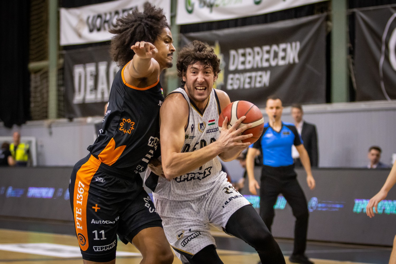 Nem volt könnyű helyzetben az NKA Universitas Pécs, hiszen zsinórban hat vereség után, gyakorlatilag győzelmi kényszerben lépett pályára Debrecenben, ráadásul Bojan Szalatics nem számíthatott Mihajlo Bogdanovics játékára. Ennek ellenére tanítványai kezdtek jobban, hazai oldalon sokáig csak Osztojics volt eredményes, Meleg középtávolijával 4-8 állt a táblán, amikor Mócsán elsüllyesztette a találkozó első hárompontosát. Hamar bónuszba kerültek, büntetőkkel igyekeztek ellépni a pécsiek, és bár Tyus is berámolt egy hármast, a nagyon aktív Durmo villanásaival a 6. percre 10-17-es fórt alakított ki az NKA. A folytatásban a szabaddobásoké volt a főszerep, aztán Brbaklic tett fel egy közelit, 15-21-nél időt kért Pethő Ákos. Joggal lehetett elégedetlen játékosai energiaszintjével a debreceni szakvezető, volt olyan pillanata a találkozónak, amikor 3-15-re állt a lepattanócsata, Hőgye és Tyus kinti találataival mégis a fehér mezesek jutottak előnyhöz a negyed végére (23-21).