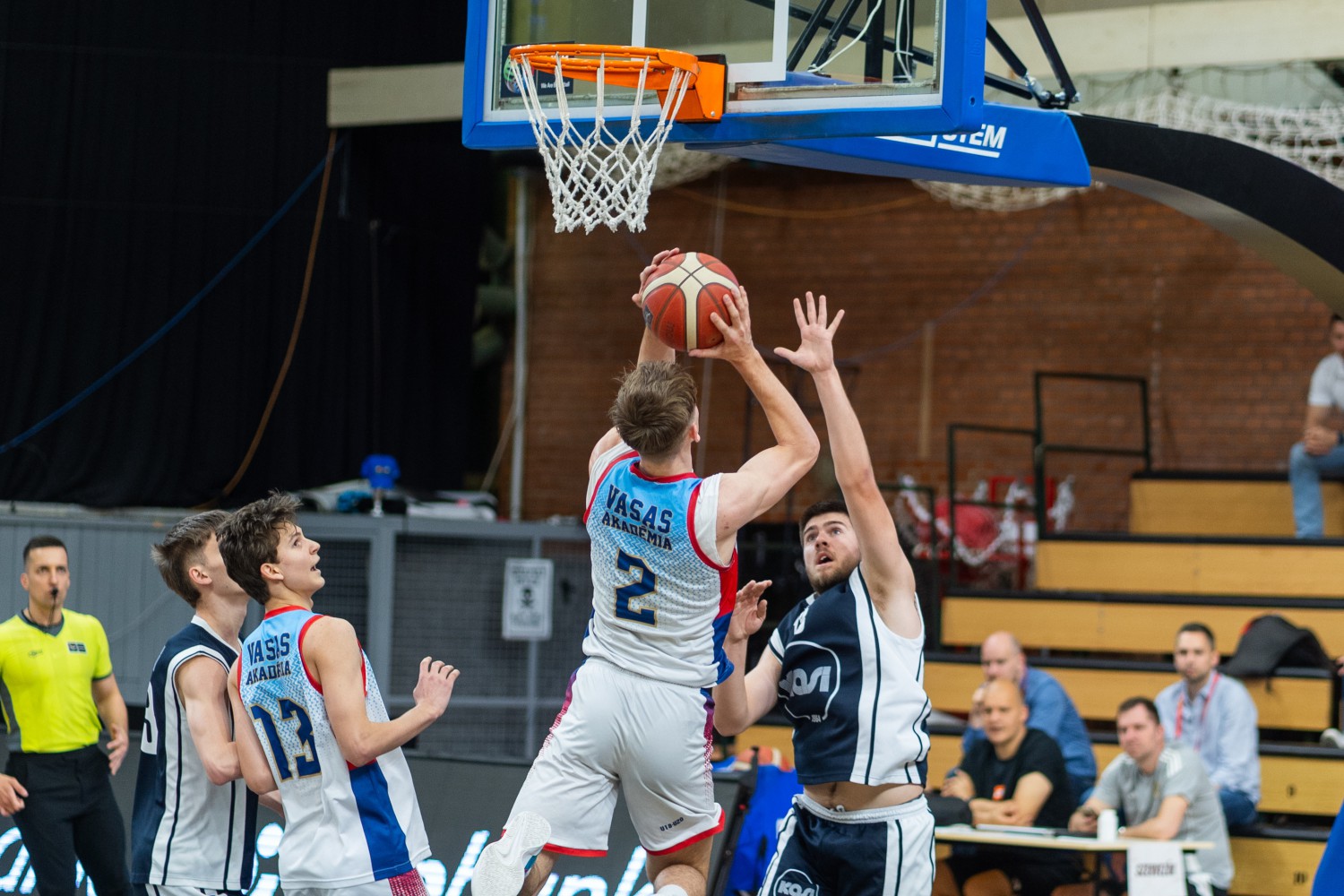 A másik alsóházi összecsapáson 21 ponttal, 31-10-re nyerte az első 10 percet a Halasy Örs (24 pont, 6-6 pattanó és szerzett labda, 31 VAL), Zöldi Péter András (14 pont, 7 pattanó, 6 gólpassz, 24 VAL), Saincaize Dániel Noel (13 pont, 5 pattanó, 18 VAL) és Erdős Artúr (12 pont, 7 pattanó, 17 VAL) húzta Vasas Akadémia. A második játékrész azonban 19 ponttal (9-28) a leginkább Halmai Zsombor (27 pont, 5-5 pattanó és eladott labda, 29 VAL), Czeibert Soma Gergő (12 pont, 11 pattanó, 4 szerzett labda, 21 VAL) és Sághy Tamás (7 pont, 10 pattanó, 4 eladott labda, 15 VAL) jó játékára alapozó KASI/A csapatáé volt, így a félidőben csak két pont volt a különbség a fővárosiak javára. A fordulás után a kaposváriak 10-0-val kezdték a harmadik negyedet, de erre kaptak egy 7-0-t a pasarétiektől, akik 10 perccel a vége előtt 3-mal mentek (59-56). A záró felvonás első fele megint a somogyiaké volt, akik 77-75-nél még vezettek a 37. percben. A mérkőzés végjátéka azonban egy 10-0-s futással a Vasasé volt, amely egy izgalmas, rendkívül fordulatos meccsen diadalmaskodott.